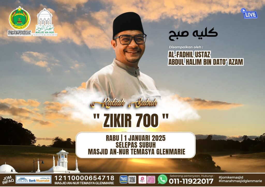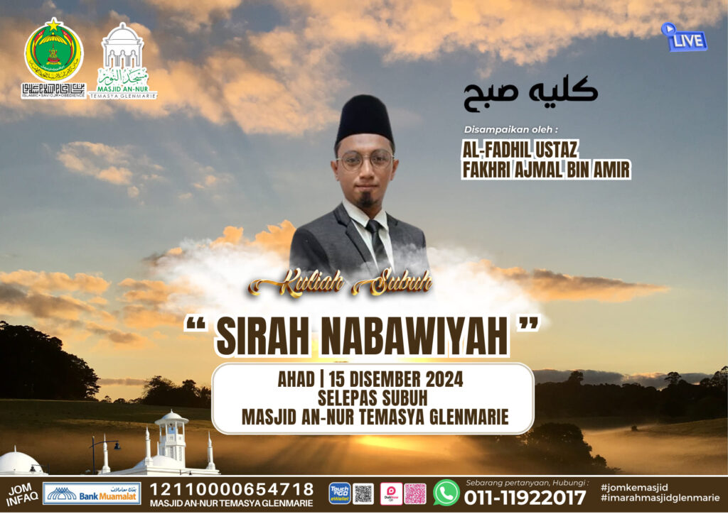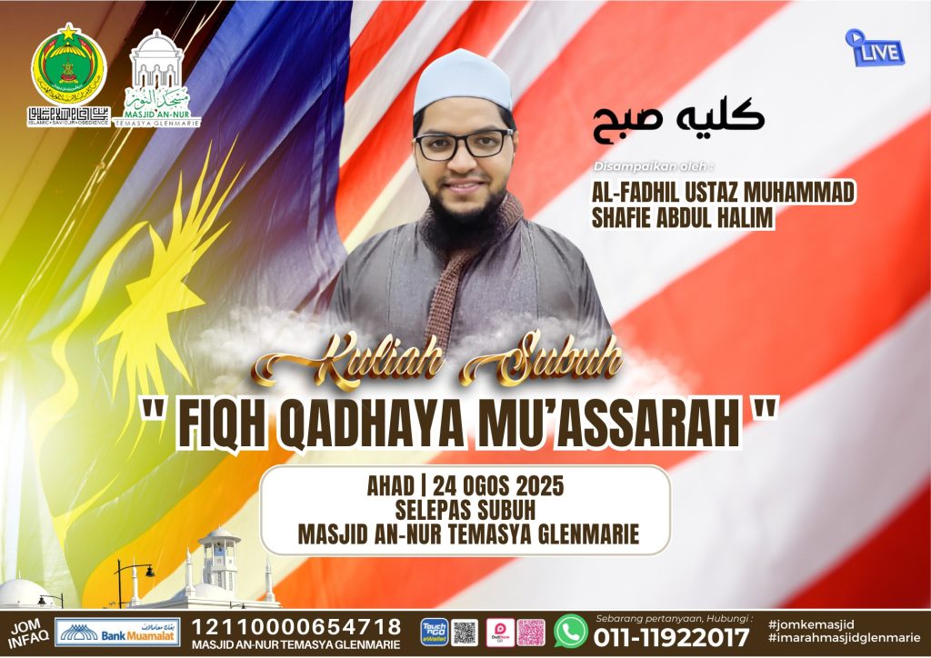 Kuliah Subuh Masjid An-Nur Temasya Glenmarie : Sabtu, 30 Ogos 2025 : Y.Bhg Ustaz Mohd Shakir bin M. Salih : Amalan Sedikit Pahala Berganda : Selepas Solat Subuh Like & Share Tiktok Masjid An-Nur Glenmarie |https://www.tiktok.com/@masjidannurglenmarie Sertai Group Whatsapp Info Masjid An-Nur Glenmarie |https://chat.whatsapp.com/88cWICrNmviAcFmwlxe9BQ Infaq Onlinehttps://toyyibpay.com/onlineinfaqmatg Infaq Majlis Ilmu | 562478174539 (Maybank) Infaq Operasi MATG […]